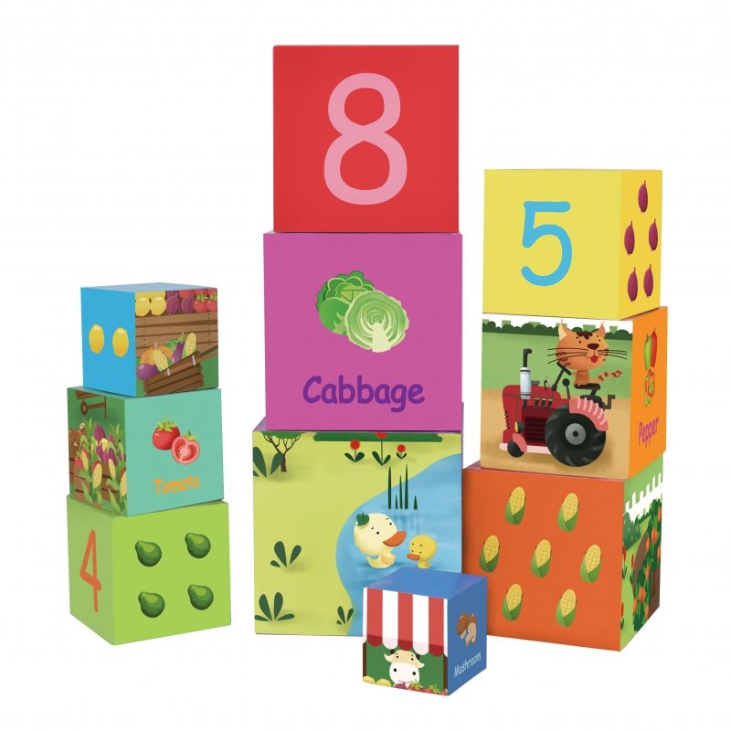 CLASSIC WORLD Układanka Nauka Liczenia Warzywa to zestaw 10 kartonów, na każdym namalowane są piękne kolorowe warzywa w odpowiedniej liczbie, która również umieszczona jest na kartonie. Dodatkowo po ułożeniu wszystkich elementów na sobie uzyskamy obraz jak uprawiane są warzywa na farmie. Zabawka pomaga w nauce liczenia, nazywania liczb, warzyw oraz rozmiarów. Super sposób na spędzenie wolnego czasu z dzieckiem połączonego z nauką. Na każdym z elementów układanki zamieszczona jest również nazwa warzywa przedstawionego na rysunku. Układanka pobudza wyobraźnię oraz ciekawość poznawania świata przez dziecko.